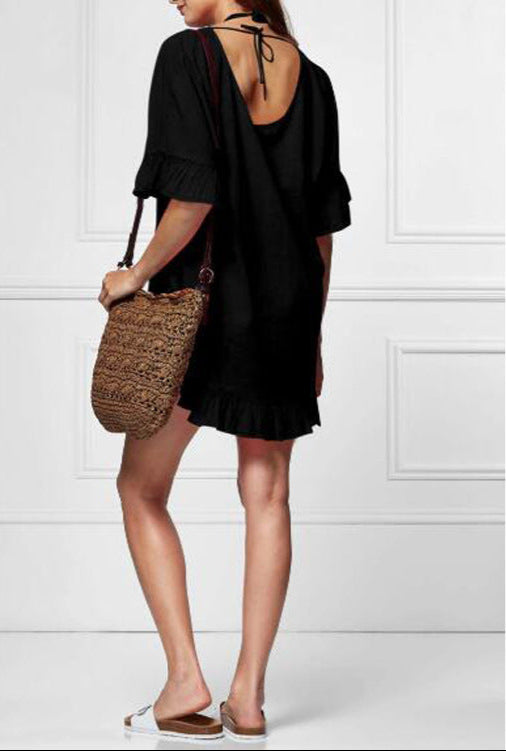 Stay stylish and protected under the sun with the Bola Ruffled Sun Cover-Up. Crafted from a soft and airy cotton blend, this versatile cover-up ensures comfort during warm beach days. The loose-fitting silhouette, paired with playful ruffled details, offers effortless style, while the V-neck adds a touch of elegance. Whether strolling along the shore or lounging by the pool, this caftan-inspired piece is your go-to choice for sun protection and chic vacation vibes.