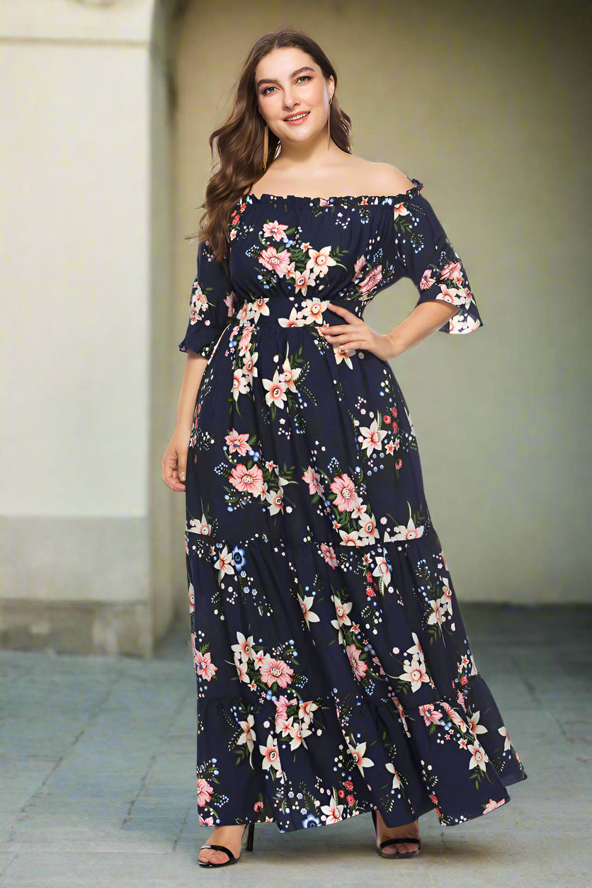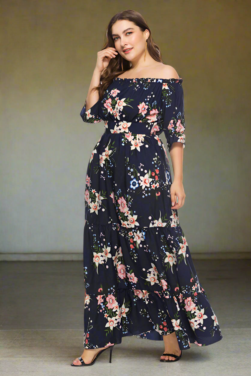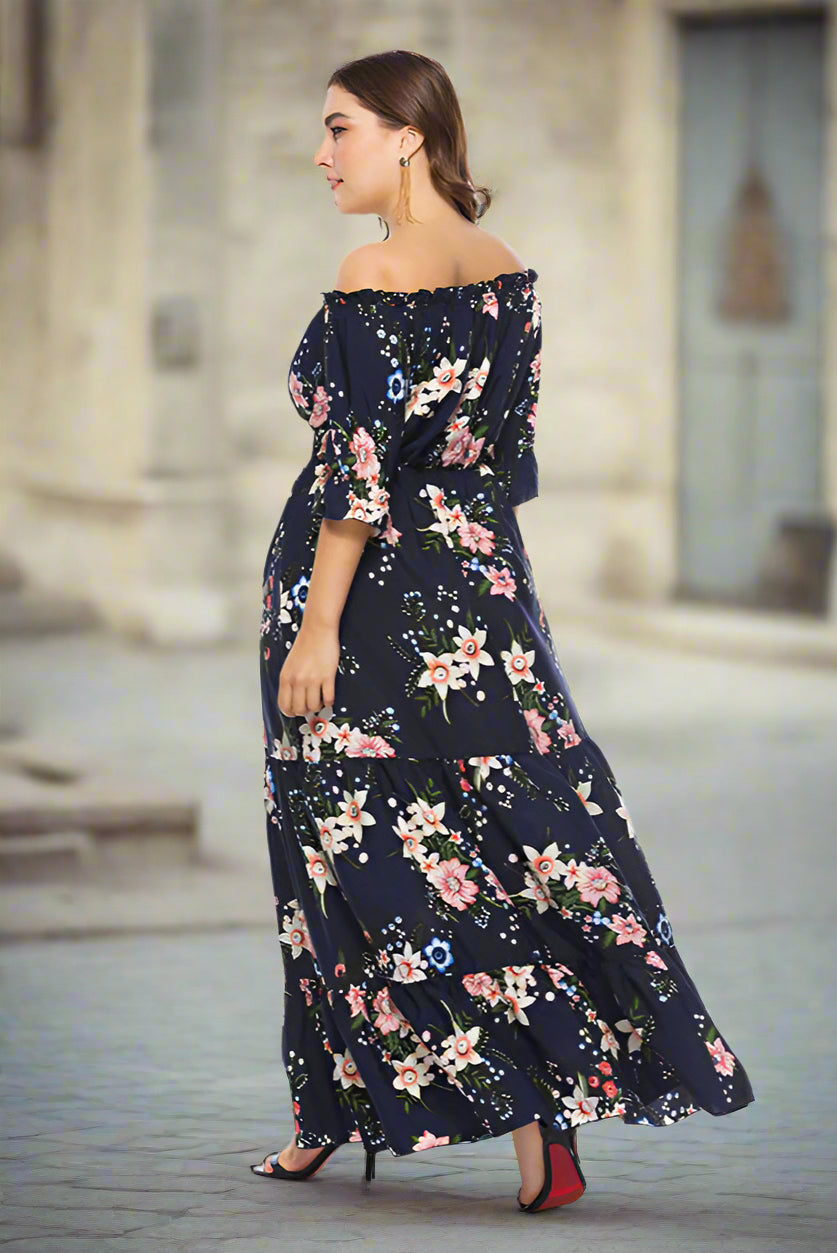 Celivie - Effortless Off-Shoulder Floral Maxi Dress