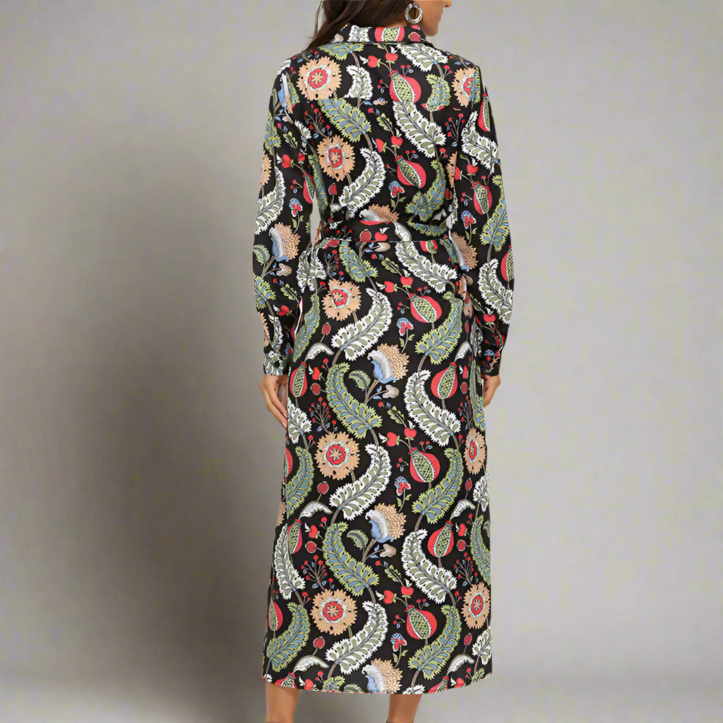 Elvoria - Feminine Paisley Shirt Dress
