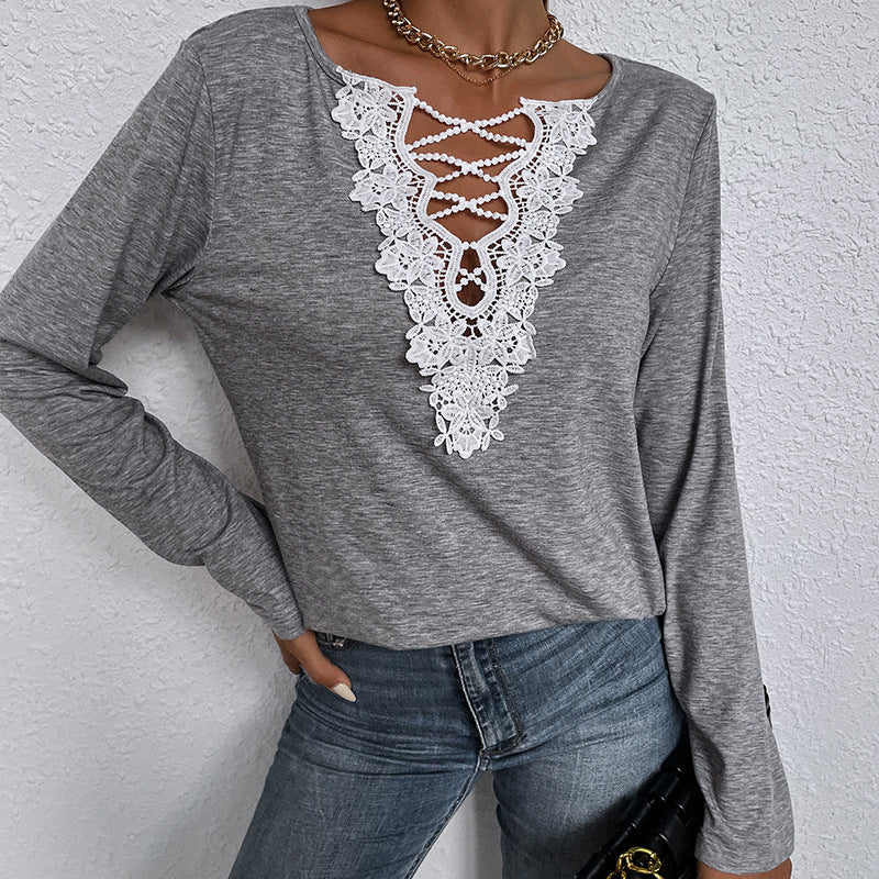 • Design: Elegant lace detailing around the neckline with crisscross accents.