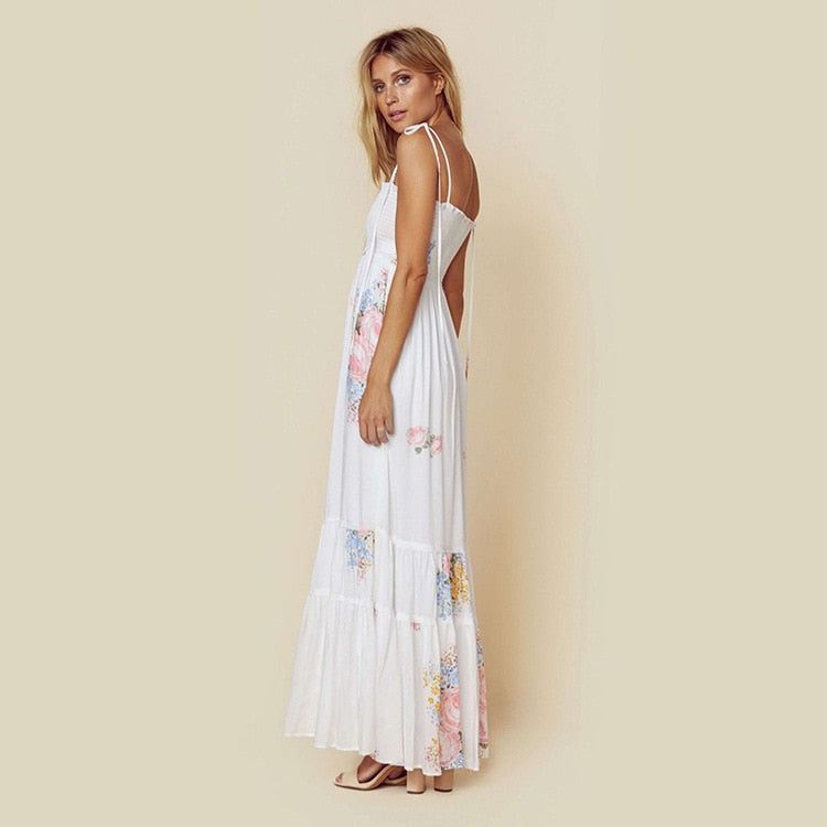 Lavielle - Women's Floral Tiered White Maxi Dress