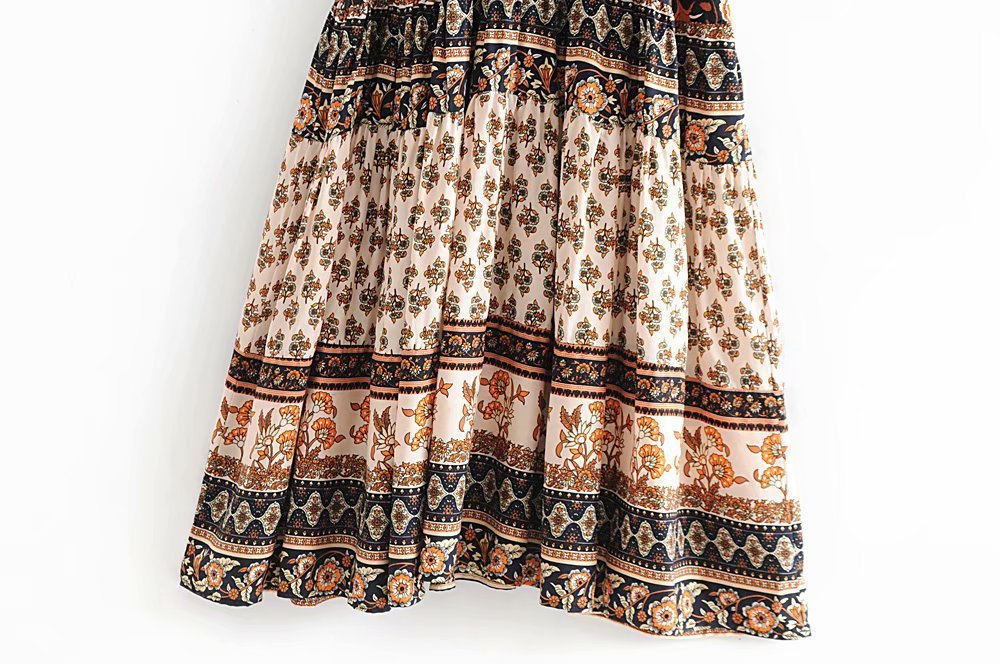 Capture the essence of effortless elegance with the Olivelle Women's Boho Maxi Dress. Designed with lightweight, breathable fabric, this dress features a relaxed fit and a tiered hemline for an airy, flowy silhouette. The intricate boho-inspired floral patterns and contrasting V-neckline trim add a touch of artisanal charm. Complete with short, loose sleeves and an adjustable drawstring waist, this maxi dress is ideal for beach days, casual outings, or warm summer evenings. Effortlessly pair it with sandals and minimal accessories for a polished boho look.