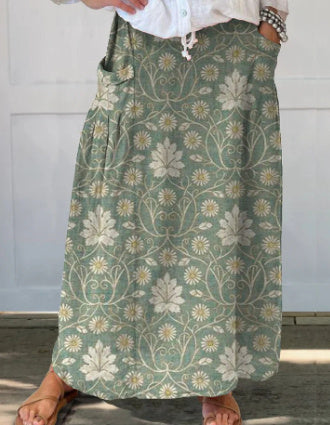 Introducing our Sandy Retro Floral Art Linen Skirt, a stylish and versatile piece that adds a touch of charm to your wardrobe. This skirt features an A-line silhouette that flatters the figure, offering both comfort and sophistication for any occasion. Crafted from lightweight linen fabric, our skirt ensures breathability, making it perfect for warm days. The full-length design combined with a high waist and elastic waistband provides a comfortable fit, allowing for easy movement throughout the day.