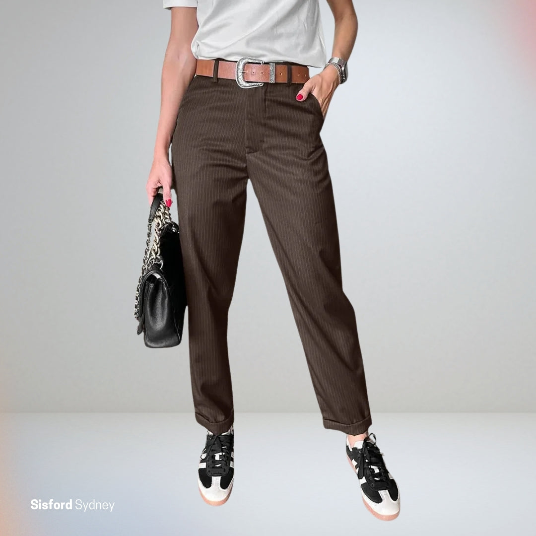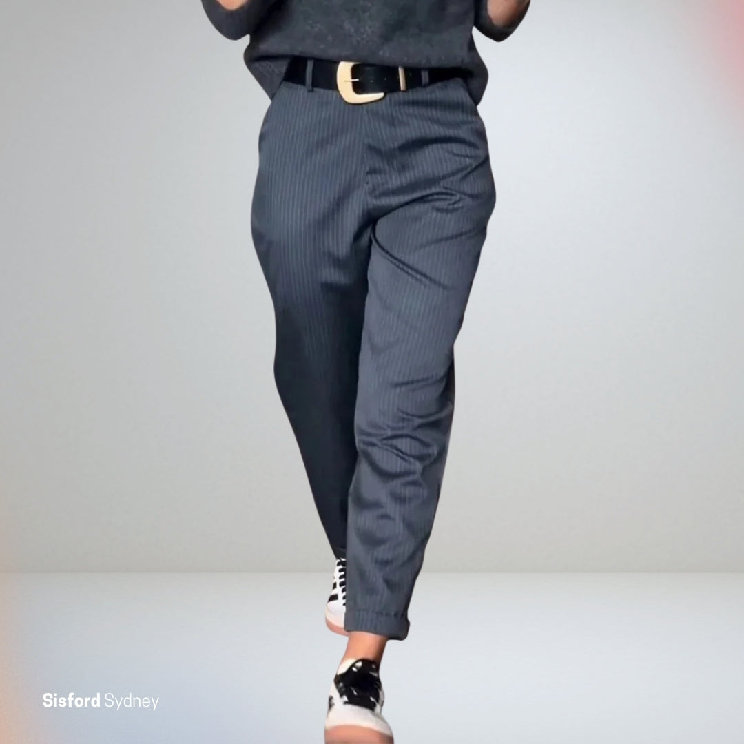 Upgrade your wardrobe with the Sienna™ Women's Sleek Tailored Trousers, designed for effortless elegance and all-day comfort. These sleek, tapered trousers feature a classic pinstripe pattern, giving them a refined, elongated silhouette.